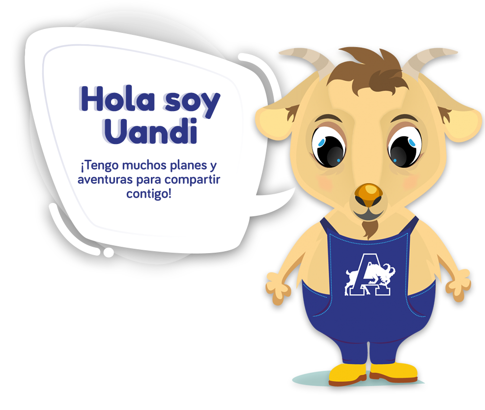 Uandi es nuestro cabrito, un pequeño alegre y listo. Asiste al colegio y tiene muchos amigos, le gusta salir a hacer deporte y compartir con su familia. A Uandi le encanta compartir sus experiencias y tiene muchas historias que contar, por eso ha llegado al club Chiquiandinos donde quiere conocer a cientos de amiguitos.