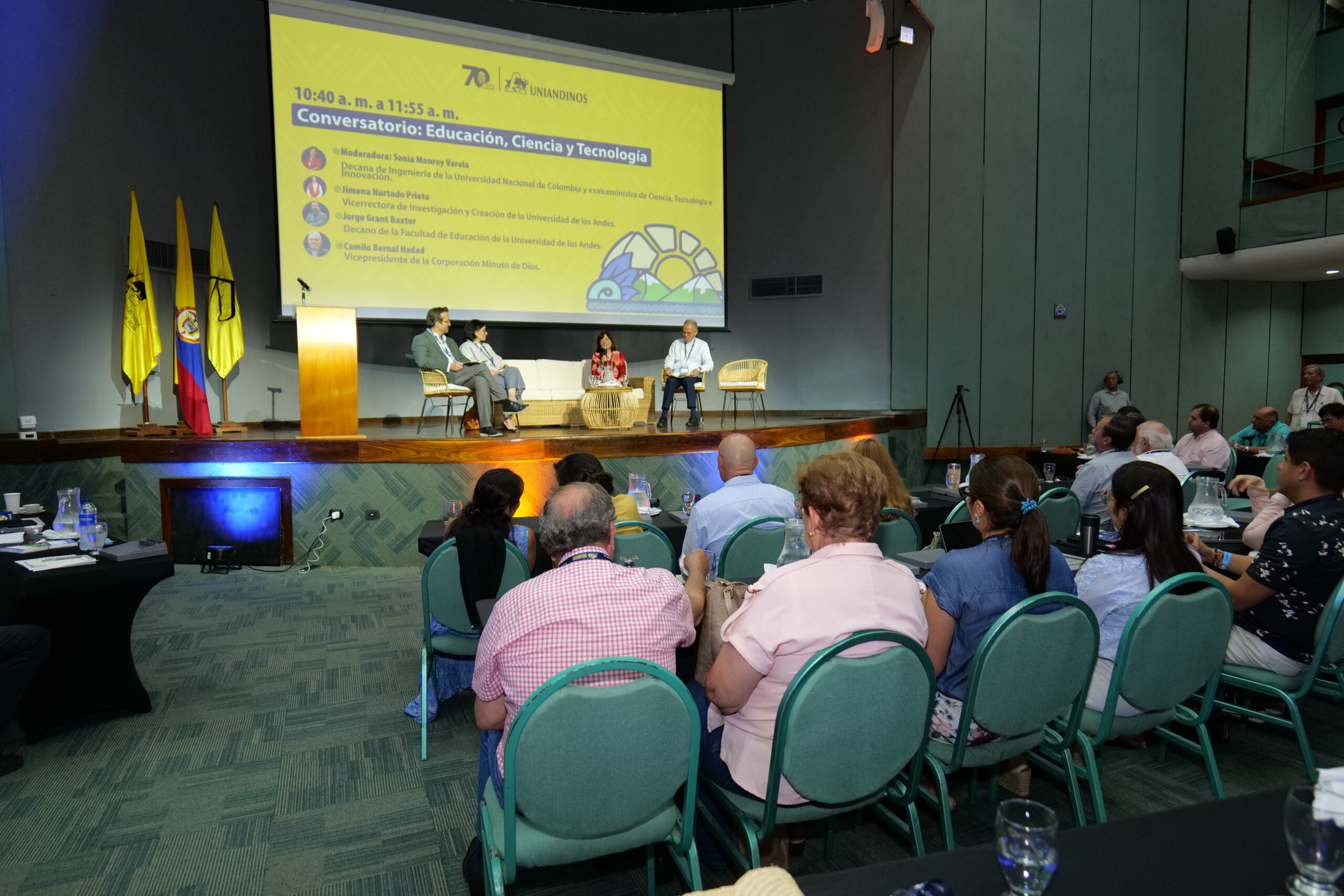 Este panel se centró en el papel de la educación como motor de desarrollo, los retos del ecosistema científico colombiano y el vínculo entre academia y políticas públicas. Participaron Jimena Hurtado (Vicerrectora de Investigación, Uniandes), Jorge Grant (Facultad de Educación, Uniandes), Sonia Monroy (Universidad Nacional) y Camilo Bernal (Minuto de Dios).